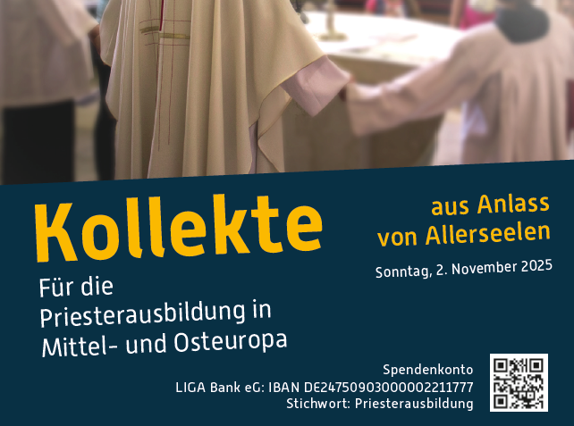 Am Festtag „Allerseelen“, am 2. November 2025, bitten die deutschen Bischöfe gemeinsam mit dem Osteuropa-Hilfswerk Renovabis um Ihre Spende zugunsten der Priesterausbildung im Osten Europas. Die Kirchen dort brauchen dringend gute Seelsorger aus ihren eigenen Reihen. Wir wollen uns mit den Kirchen im Osten Europas solidarisch zeigen – auch und gerade in diesen schwierigen Zeiten, da die Menschen seelsorglichen Beistand dringender brauchen denn je.