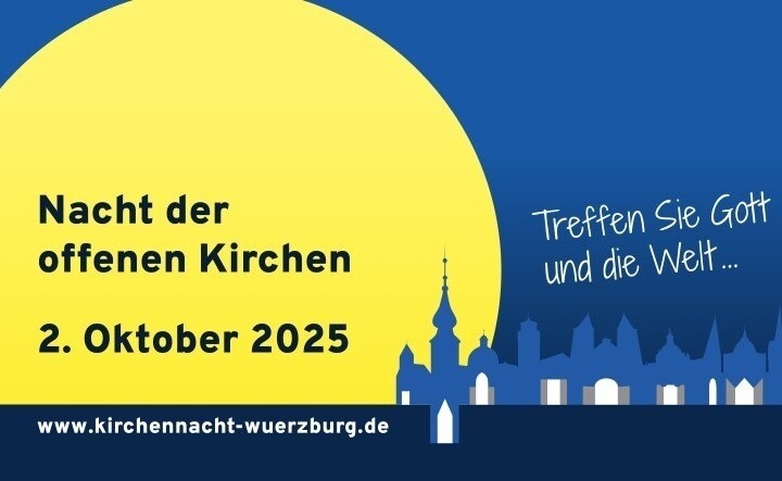 Am 2. Oktober 2025 findet in Würzburg bereits die 18. Nacht der offenen Kirchen statt. In mehr als 15 Kirchen der Würzburger Innenstadt heißt es dann ab 19 Uhr wieder: "Treffen Sie Gott und die Welt!" Ein großes Team hat wieder ein buntes Programm vorbereitet, Gott und die Welt (neu) zu entdecken.